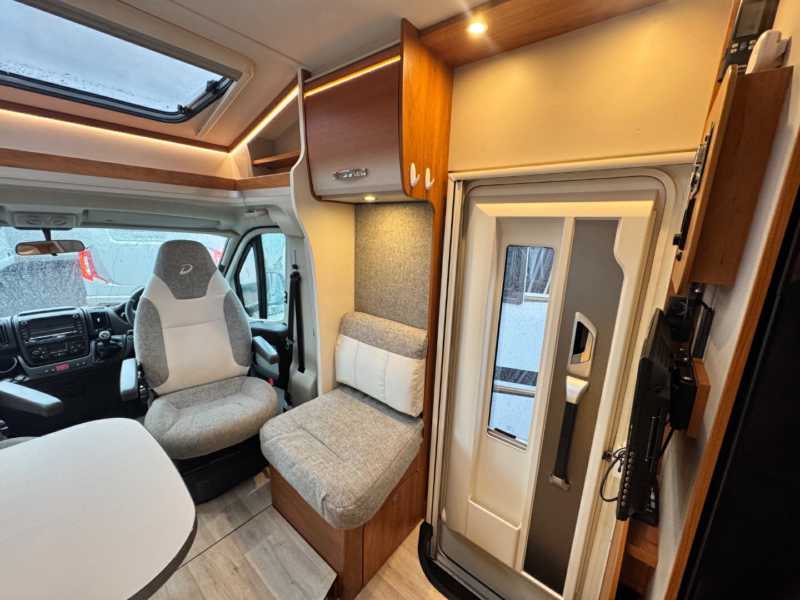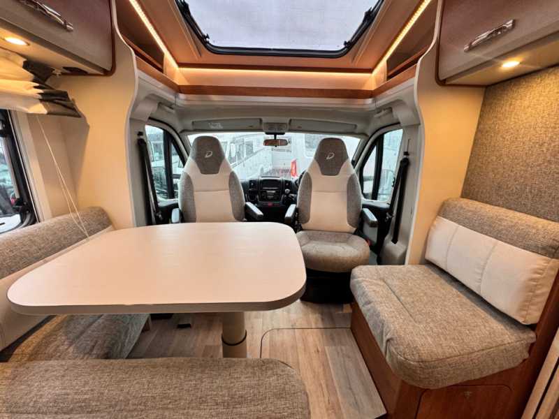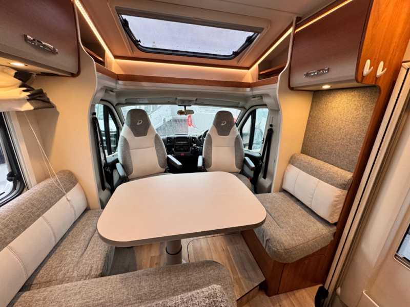 The T7057 DBM boasts a generous rear island bed, central washroom with separate shower, and a bright, modern front living area. High-quality furnishings and clever storage solutions make every journey feel like home.